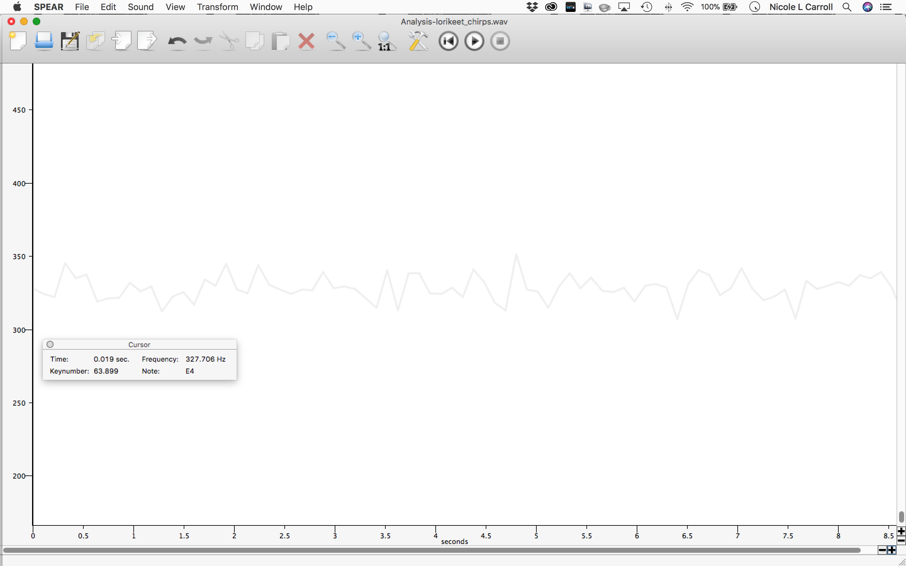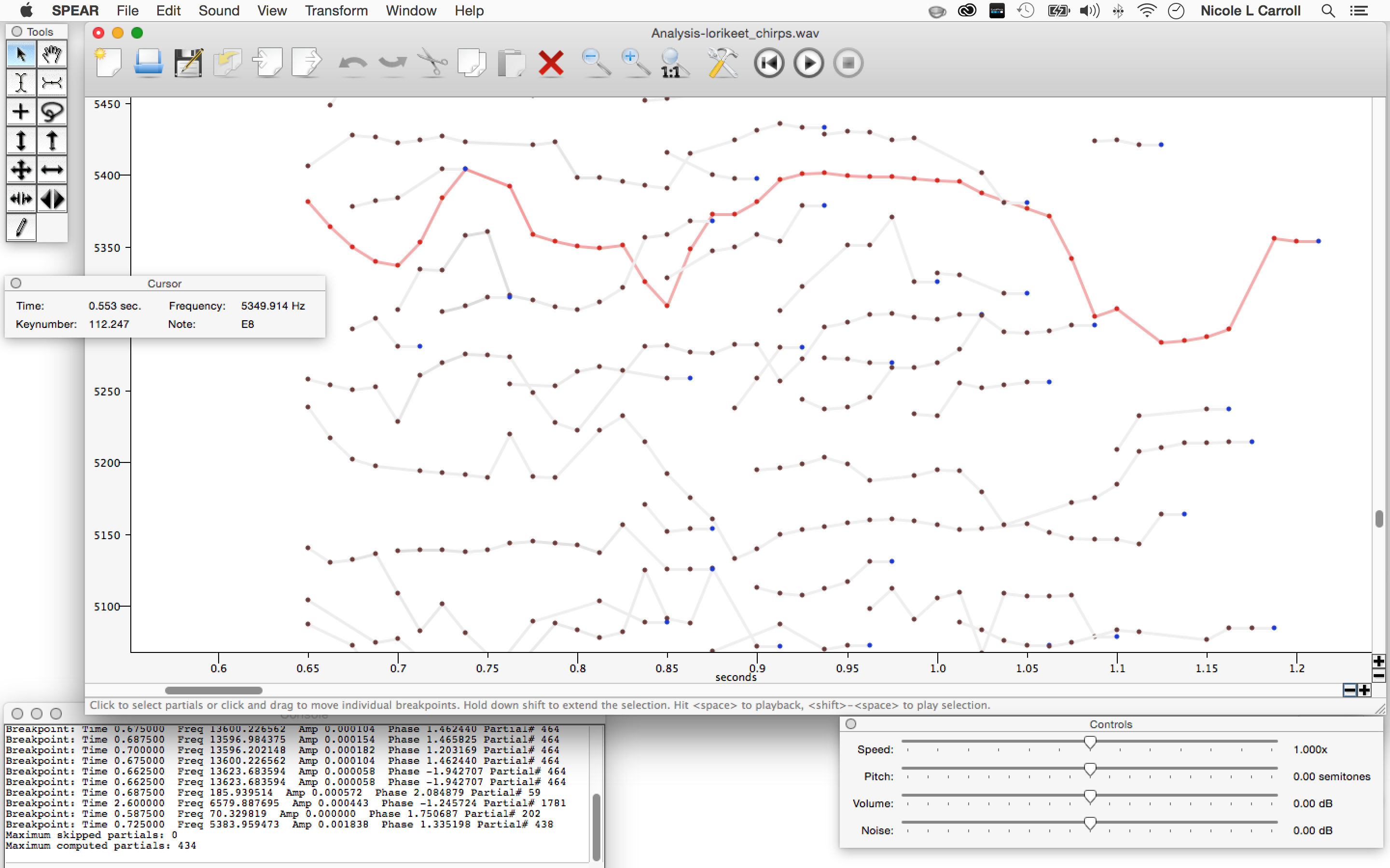 Default analysis of rainbow lorikeets in urban setting, zoomed in to show editable breakpoints.