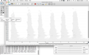 Example output after manually deleting partials, leaving those that still retain pulse pattern. The following samples are representative outcome of how I use SPEAR for processing sounds to be used in compositions.
